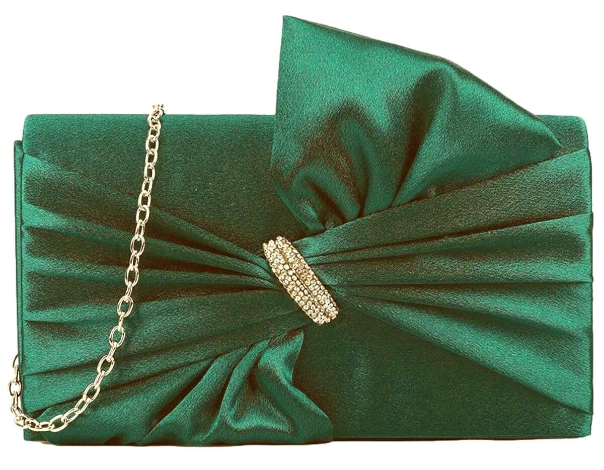Green Clutch Bag Ladies Satin Wedding Prom Evening Shoulder Bag Diamante Trim
